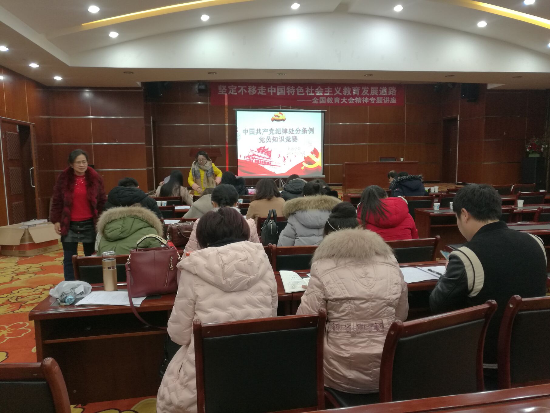 为深入学习宣传贯彻新修订的《中国共产党纪律处分条例》,进一步增强我院全体党员同志的纪律意识,12月8日我院《中国共产党纪律处分条例》知识竞赛活动在四川智悦教育培训基地三楼会议室举行,外语学院党员教职工参加了此次活动。