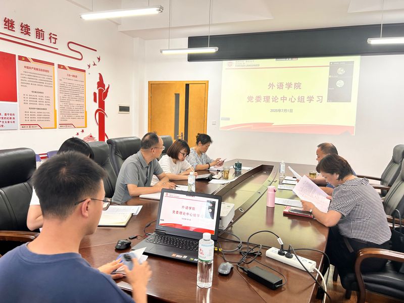 2025年7月1日,外语学院党委理论学习中心组在宜宾校区A1-435开展了专题学习活动,由党委副书记(主持工作)鄢万春主持,全体党委委员参加了学习。