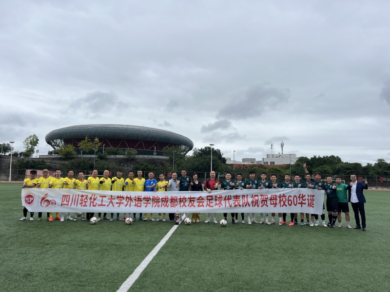 在学校迎来60周年华诞之际,2025 年 10 月 12 日下午 3 点,汇东校区操场,外语学院成都校友会足球代表队与学校教师队的足球友谊赛,以绿茵竞技的独特方式,为母校生日献上饱含活力与深情的贺礼。