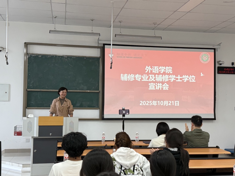 2025年10月22日下午,四川轻化工大学外语学院在李白河校区博学楼H1-207教室成功举办了英语辅修专业宣讲会。本次宣讲会旨在帮助广大学生深入了解英语辅修课程的相关政策、培养方案及发展前景,激发同学们跨学科学习的热情。会议由外语学院党政办主任颜锐老师主持。