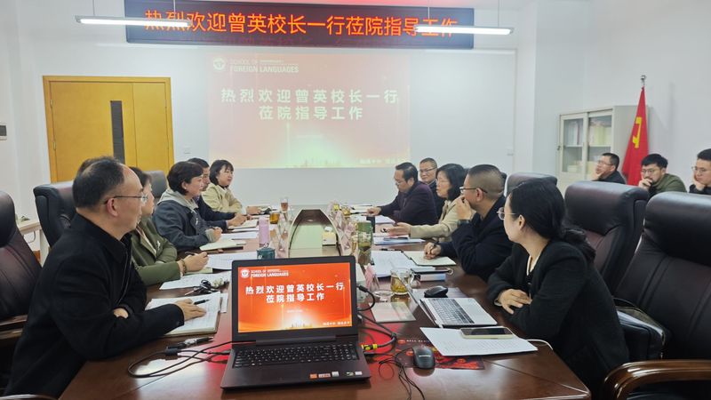 2025年11月4日下午,校党委副书记、校长曾英一行莅临外语学院,在宜宾校区A1-435会议室召开专题调研座谈会,旨在全面了解外语学院发展现状,精准指导学院未来建设方向。此次调研座谈会由外语学院院长云虹主持,学校相关职能部门负责人、外语学院领导班子、各教研室主任及骨干教师代表共同参会,会场气氛热烈,交流深入。