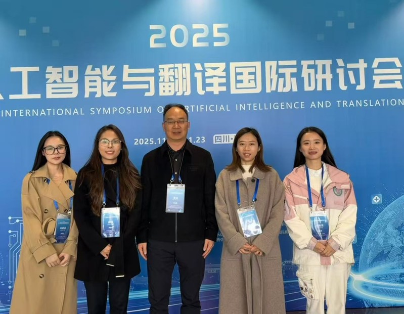 1121日至23日,由四川省翻译协会与川北医学院主办的2025年人工智能与翻译国际研讨会暨四川省翻译协会学术年会在南充召开。200多名中外学者及嘉宾汇聚一堂,围绕人工智能技术驱动下翻译领域的新发展、新挑战与新机遇展开了深入探讨与交流。外语学院副院长左义,教师康雯文、文晓洁,2025级英语笔译研究生向洋、马婉清参会。