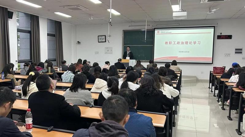 为深入学习宣传贯彻党的二十届四中全会精神,认真落实学校党委工作部署,近日,外语学院党委组织全体教职工在李白河校区博学楼 H1-223开展2025年11月政治理论学习活动。本次学习由学院党委书记郁毅主持并领学。