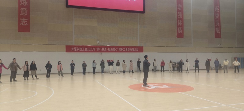为促进学院教职工相互交流,丰富教职工业余文化生活,营造和谐向上的组织文化,2025年12月3日下午,外语学院工会在李白河校区体育馆举办“同行共进·拓路凝心”教职工素质拓展活动。活动围绕“运动、健康、快乐、拼搏、向上”的主题展开,学院全体教职工积极参与。