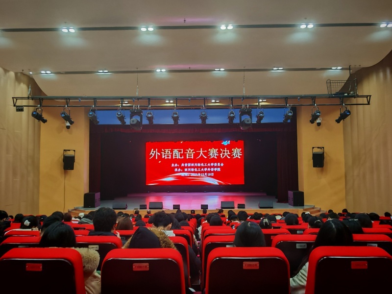 12月10日下午,四川轻化工大学李白河校区盐都音乐厅小剧场内气氛热烈,由校团委主办、外语学院承办的第三届外语配音大赛决赛在此举行。大赛旨在深化“以赛促学、以学促用”的教学理念,并作为学校推动“第二课堂”活动、促进学风建设的重要载体,有效丰富了校园文化生活,提升了学生的语言综合实践能力。